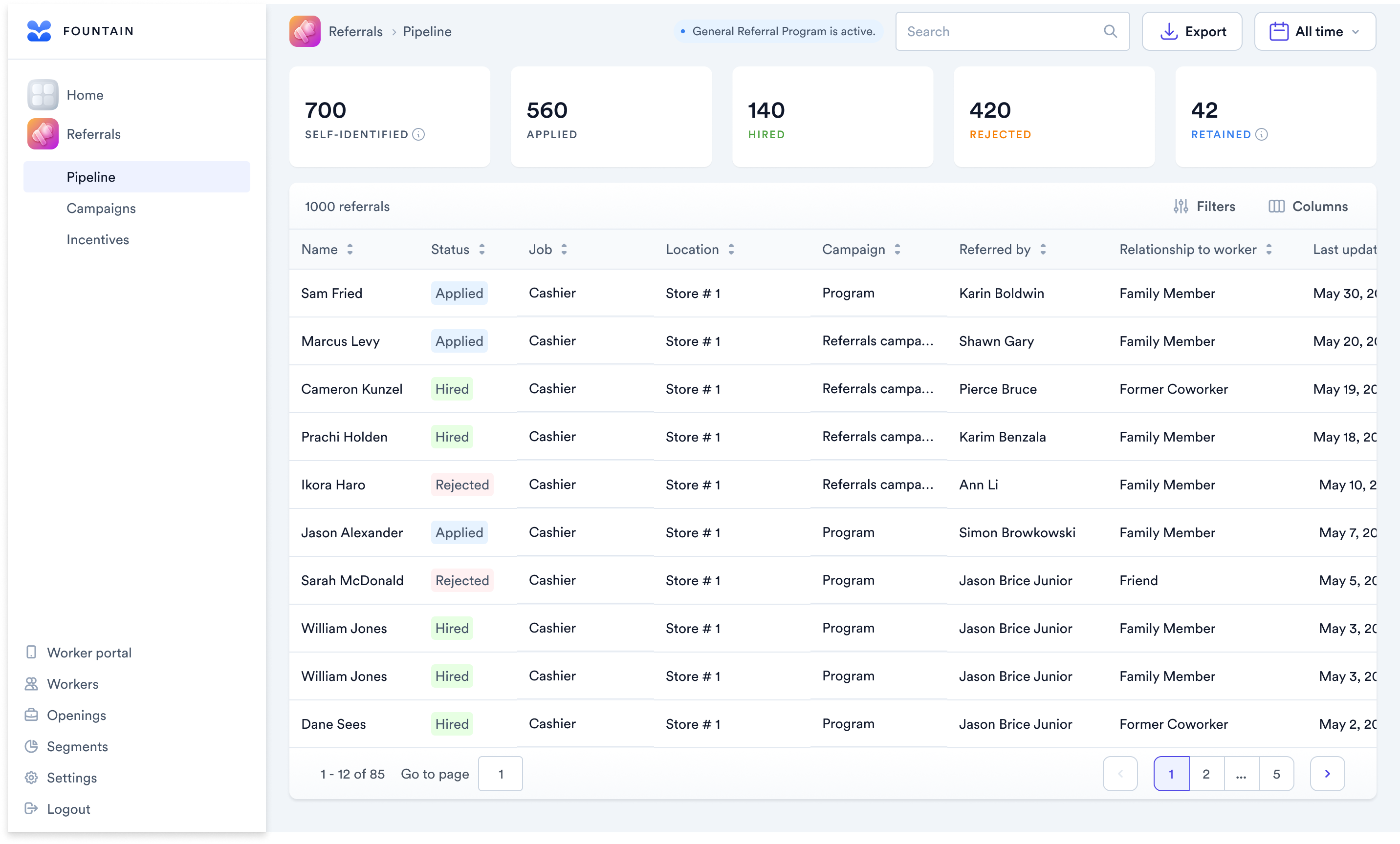 Fountain Referrals tracks every referral, targets the right roles, and keeps employees engaged. Launch campaigns that scale, and fill roles faster with people your team already trusts.